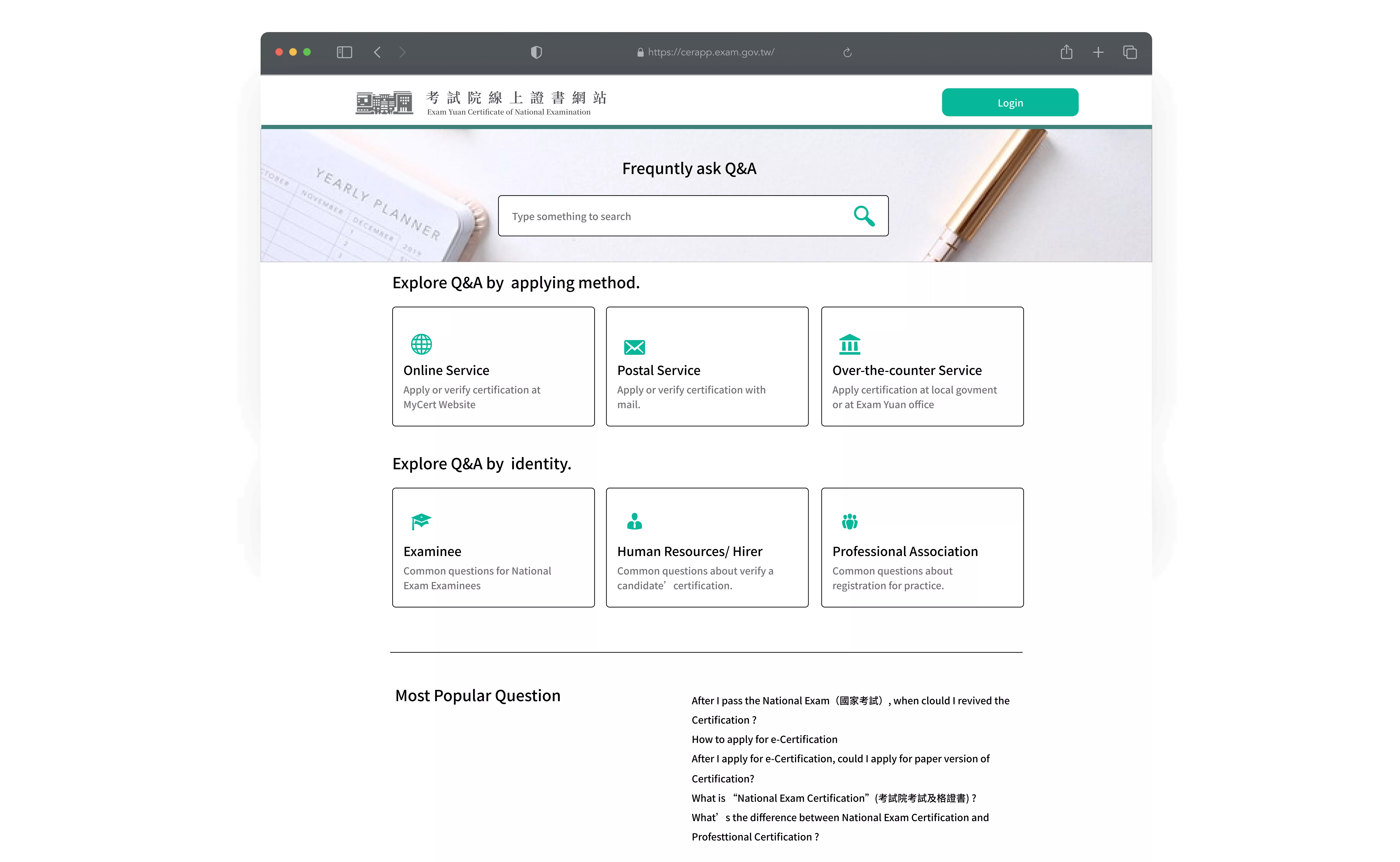 Original website are built in decades ago, many feature are behind the time. As to the growing number of foreign examinee, mobile user, and new verification method like Mobile ID, FiDO, Exam Yuan wish to have a new website for e-Certification applying service. Making new service could be more trustable and efficiency.